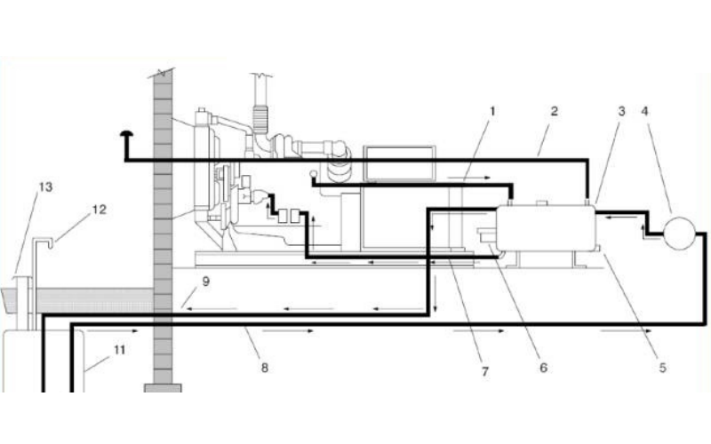 當汽柴油溫度超過38℃時,汽車發動機就可能有輸出功率損失,當汽柴油溫度超過60℃時,汽車發動機很有可能受到侵害。因而,日用油箱容量最少應是4鐘頭燃料消耗量,以確保有充足的容積來制冷汽車發動機泵油。假如需采用比較小容量機油箱,也建議將進油管引至主油箱,或安裝汽柴油冷卻塔。